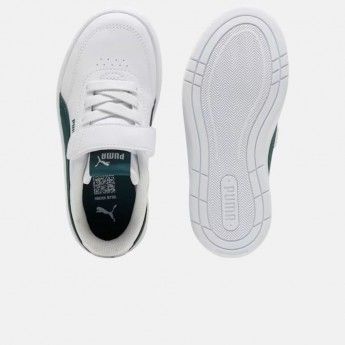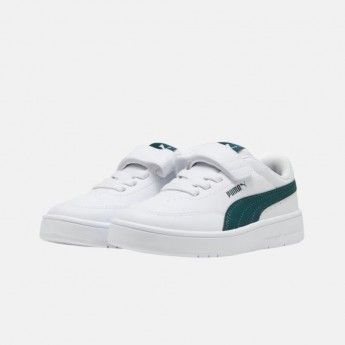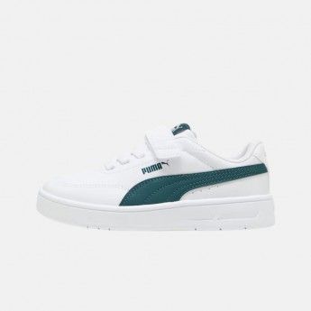Entre no estilo com o PUMA Court Classic! Esses tênis trazem um visual divertido e esportivo com um toque confortável, perfeito para os pezinhos em movimento. Desde a hora de brincar até correr com os amigos, eles estarão prontos para todas as aventuras. Clássico, confortável e sempre legal – cada passo é uma vitória! Cor: PUMA Branco-Verde Terrain