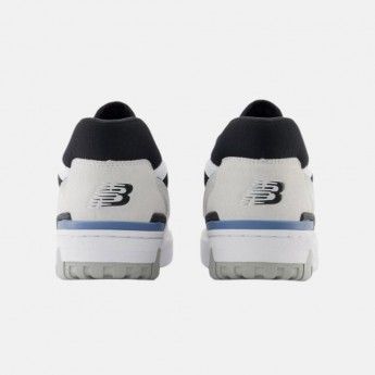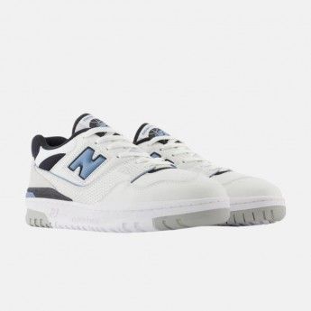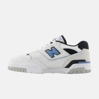Modelo clássico e intemporal da New Balance 550 com as cores predominantes branco e azul. A parte superior da sapatilha é constituída por couro sintético. A sola feita de borracha, o que oferece mais tração à sapatilha, tornando-as mais resistentes. O conforto já conhecido da New Balance conjugado com um dos modelos clássicos dos anos 80, reinventado para os dias de hoje.