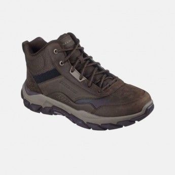 Enfrente qualquer terreno usando Skechers Relaxed Fit®: Santoro - Hopkins. Este estilo outdoor com cordões apresenta uma parte superior de couro e sintético com gola de malha, uma palmilha Skechers Air-Cooled Memory Foam® com infusão de carvão e uma sola de borracha antiderrapante Goodyear®.